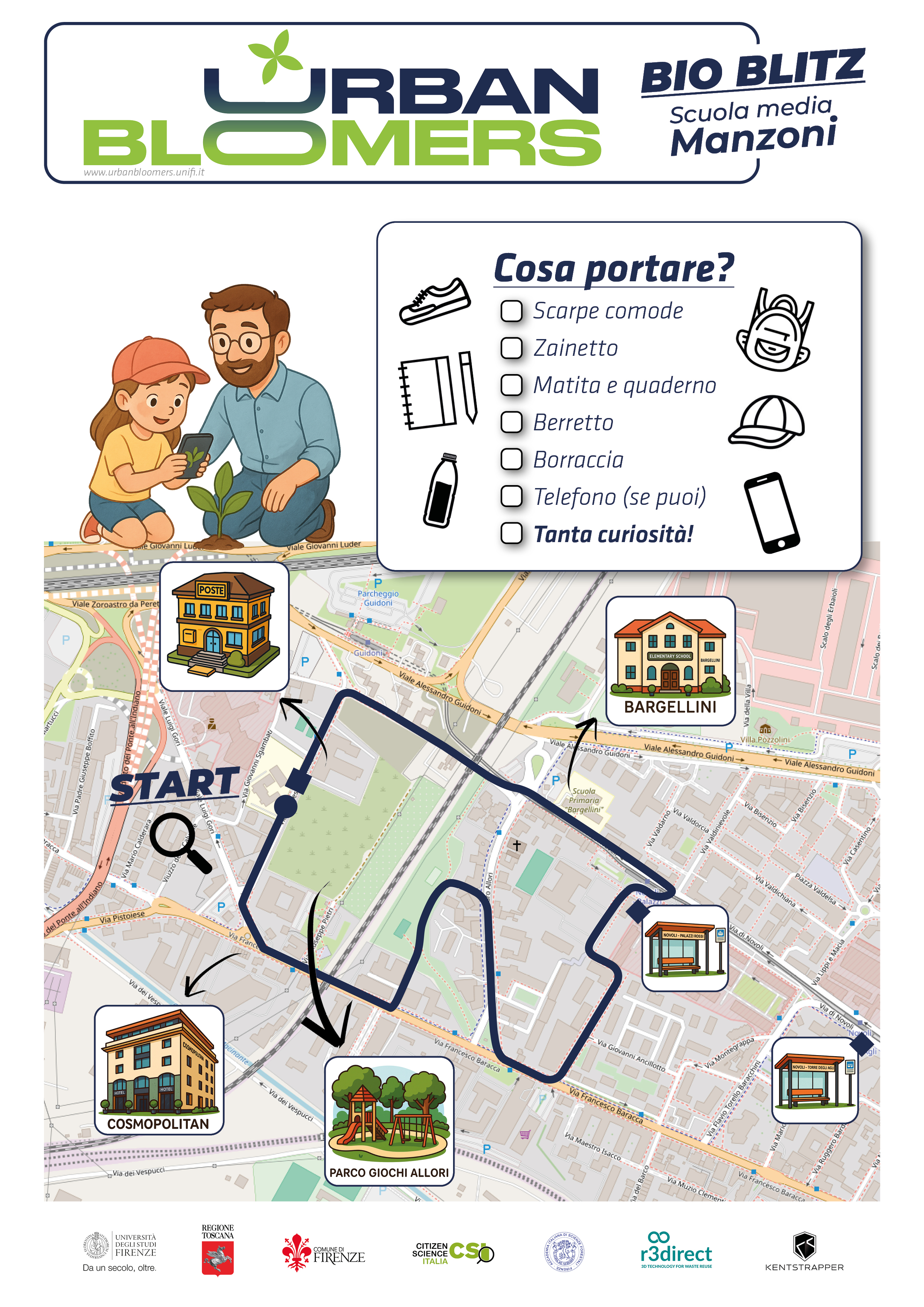 I "giovani ricercatori" delle scuole medie, insieme ai professori universitari e a Citizen Science Italia, durante le passeggiate urbane hanno contribuito a mappare la fauna (insetti, farfalle, ecc.) e la vegetazione che cresce spontaneamente all'interno delle nostre città.